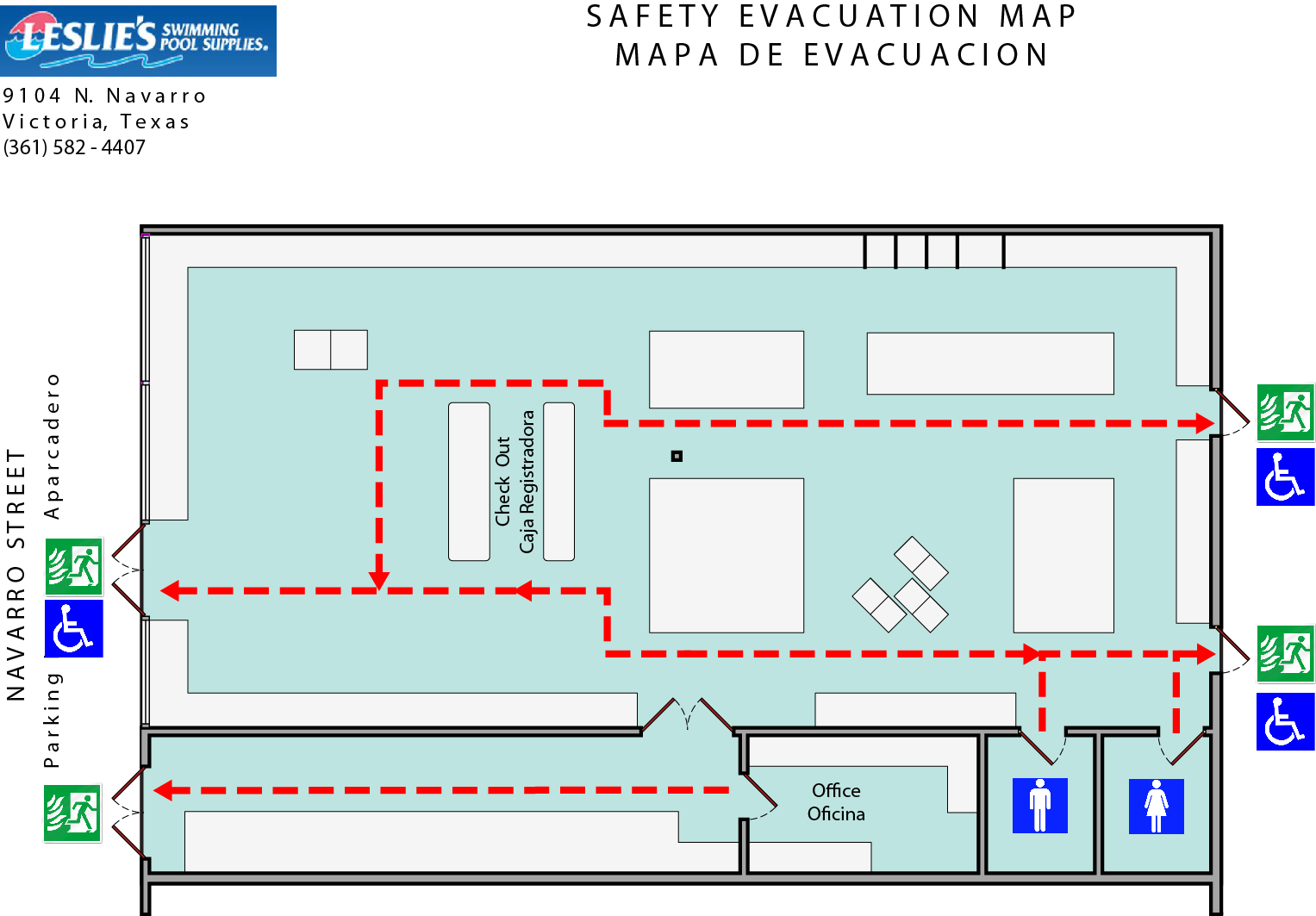DAL Designs is now proud to offer safety evacuation maps for businesses and public buildings. These maps are required by law in all buildings open to the public, they are so essential to protecting the welfare of your employees, clients, and visitors. All maps meet Federal OSHA requirements for safety evacuation maps and can include other information as desired (for example, the locations of MSDS literature, first aid kits, building plans, or fire extinguishers). We are also currently working on providing high quality, aerial photography-based safety evacuation mapping for the oil and gas industry as well.